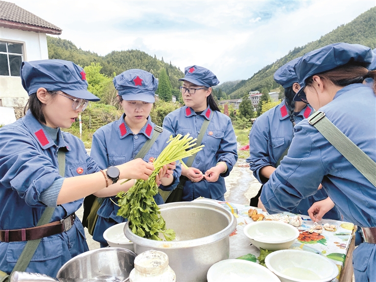 自制紅軍餐是拉薩市參訓學員進行革命傳統教育的內容之一。紅軍餐中的每一道菜都有特殊的意義,學員們利用準備好的食材、廚具、柴火等,完成了生火、洗菜、切菜、炒菜等紅軍餐制作全流程。一道道簡樸卻不失美味的紅軍菜肴,讓大家深深感受到了井岡山革命時期生活條件的艱苦。