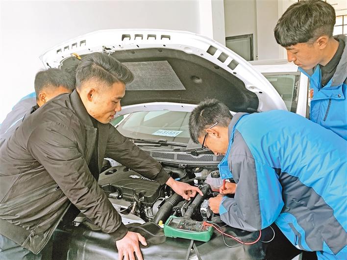 圖為林芝市職業技術學校汽修專業學生在老師的指導下進行實操訓練。記者 張猛 攝