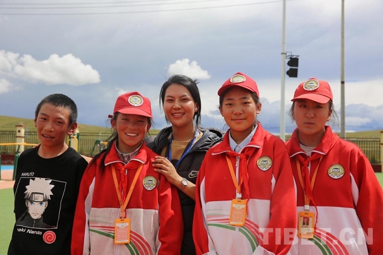 圖為西藏自治區那曲市色尼區杭嘉中學英語老師旦增卓瑪(左三)與學生們合影 攝影:吳建穎
