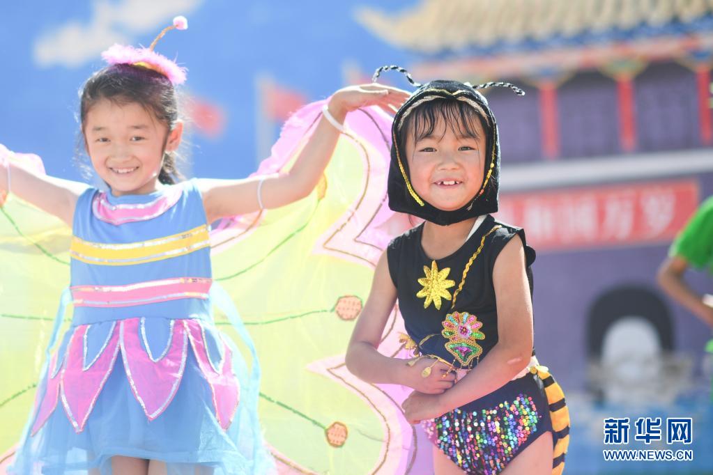 9月2日,黃南藏族自治州同仁市熱貢藝術完全小學的學生在排練繪本劇《小螞蟻找媽媽》。新華社記者 吳剛 攝