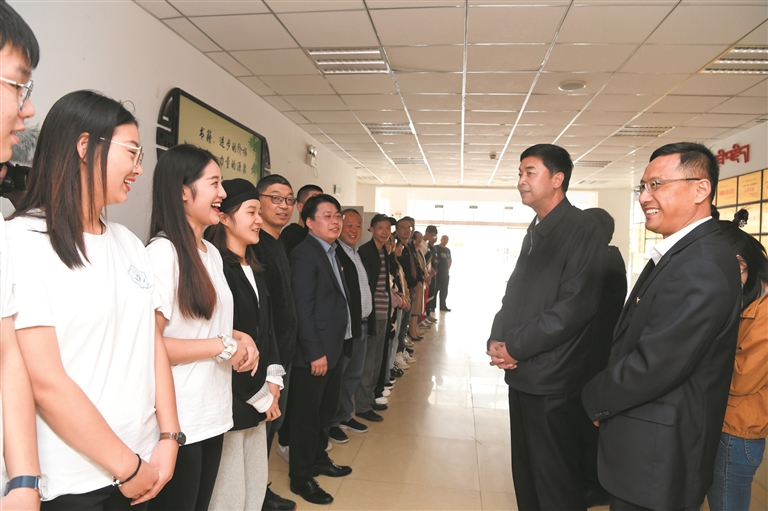 “你們辛苦了!祝大家節(jié)日快樂,身體健康,扎西德勒!”嚴(yán)金海先后來到拉薩北京高中、拉薩江蘇實驗中學(xué),看望慰問一線教師,與他們親切交談,向全市廣大教師和教育工作者致以崇高敬意,感謝他們?yōu)槲沂薪逃聵I(yè)作出的貢獻(xiàn)。并實地調(diào)研了解學(xué)校硬件設(shè)施、招生教學(xué)、國家統(tǒng)編三科教材使用等情況。嚴(yán)金海指出,無論是昨天、今天還是明天,西藏的發(fā)展都離不開一代又一代用知識武裝起來的建設(shè)者的努力,這都是老師們精心培養(yǎng)的結(jié)果。教師的職業(yè)是最光榮的,老師也是最偉大的,向您們致敬。只有好老師,才能教出好學(xué)生。希望大家認(rèn)真學(xué)習(xí)貫徹習(xí)近平總書記關(guān)于教育工作特別是教師隊伍工作的重要論述,學(xué)習(xí)貫徹習(xí)近平總書記對黃大年式教育團(tuán)隊教師代表的回信精神,堅持立德樹人根本任務(wù),加強(qiáng)教學(xué),提升質(zhì)量,做“四有”好老師,努力培育德智體美勞全面發(fā)展的社會主義建設(shè)者和可靠接班人。