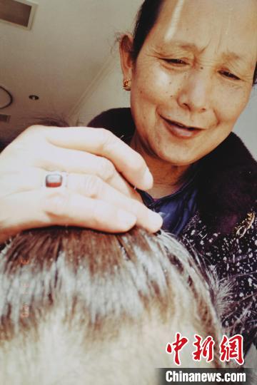 媽媽為白瑪卓嘎扎頭發。 白瑪卓嘎供圖