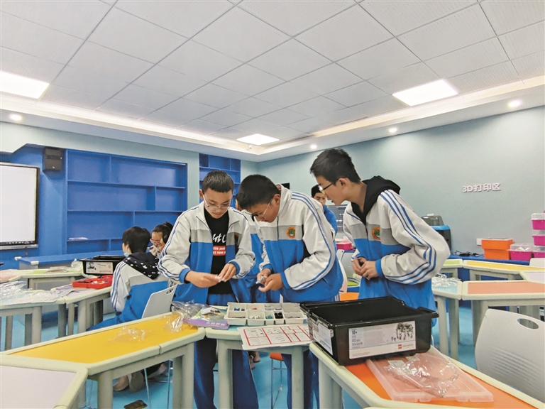王若玉所說的“科技感”,還體現在遠程巡課、智慧食堂、智慧宿舍,以及走班排課等方面,而這些“智慧”,對于住校生王若玉來說,也縮短了她與家人之間的距離。“原來給家里打電話,要到校門口找公用電話,或者借用老師的手機,現在學校安置了校園智能公用電話,用電子校徽一刷,隨時都可以通話。”她說。