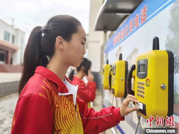 圖為臨潭一中學生王若玉刷電子校徽給家人打電話。 張婧 攝