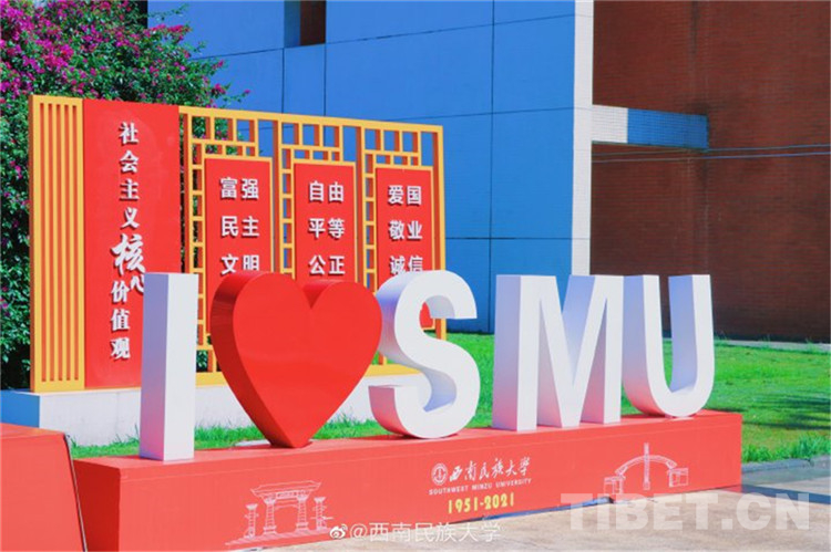 圖為西南民族大學(xué)學(xué)生慶祝母校建校70周年