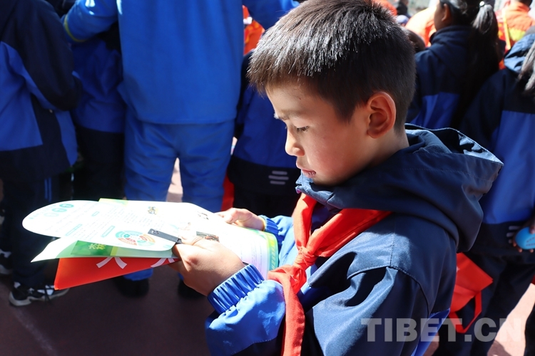 該小學(xué)相關(guān)負(fù)責(zé)人表示,通過森林火災(zāi)安全宣傳教育活動(dòng),進(jìn)一步提升了全校師生的森林防火意識(shí),提高了大家保護(hù)生態(tài)的安全意識(shí)。圖為小學(xué)生閱讀消防員發(fā)放的宣傳冊(cè) (中國西藏網(wǎng) 通訊員/張林)