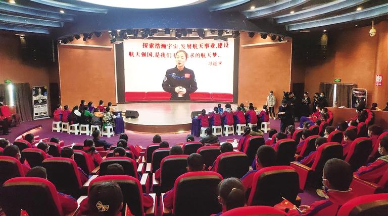 12月9日下午,“天宮課堂”的上課鈴聲在藏域星球天文體驗館準時響起,這是中國空間站首次太空直播授課,授課者為神舟十三號乘組航天員翟志剛、王亞平、葉光富。