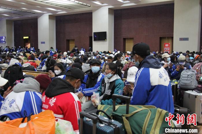 圖為準備返鄉的學生在拉薩火車站候車室。 拉薩火車站供圖