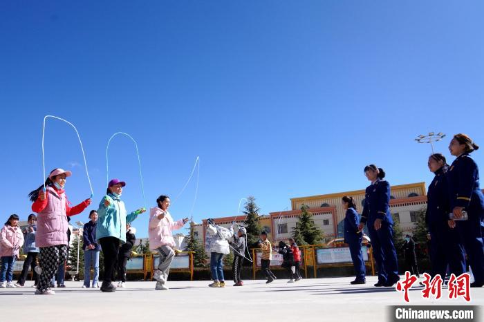 圖為志愿者和孩子們開展跳繩游戲。 施福壽 攝