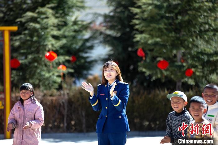 在活動中,志愿者們首先與孩子們進行了自我介紹,詳細了解孩子們的生活、學習情況。同時,帶著孩子們開展跳繩、丟沙包、短跑等互動活動。隨后,藏族歌手、總隊教育宣傳處助理員索朗德吉為孩子們演唱歌曲,在動聽的旋律中不時傳來孩子們的歡聲笑語,其樂融融的氛圍,更是感染著在場的每一個人。
