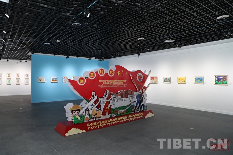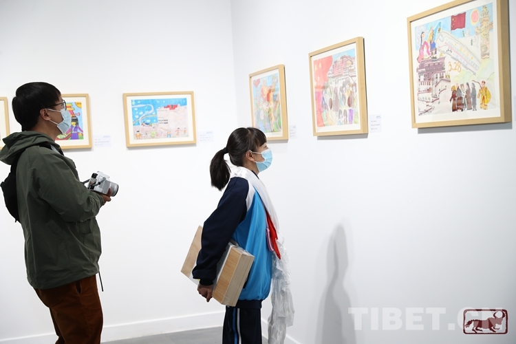 圖為畫美時代——“紀念西藏百萬農奴解放63周年”拉薩市青少年優秀繪畫作品展現場