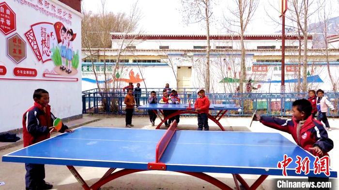 圖為多油完小學生在課余時間打乒乓球。 貢桑拉姆 攝