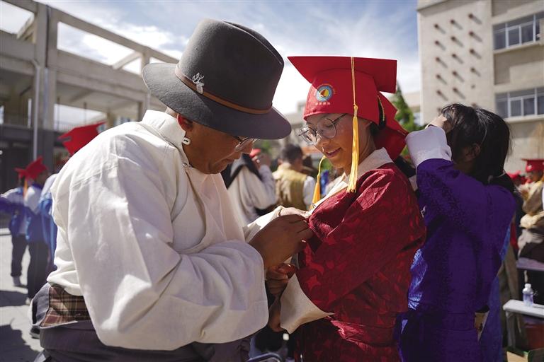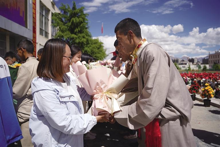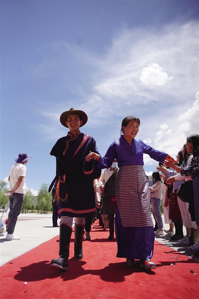 走進拉薩市第四高級中學,校園里每個角落都流露出喜悅與溫馨,同學們身著色彩鮮艷的民族傳統服裝,帶著自信的笑容,在父母與老師的陪伴下,走過“成人門”,踏上“成才路”,通向“成功門”。此時的他們意氣風發,青春的面龐如同朝陽一般閃爍著光芒,滿懷豪情地憧憬精彩的人生。高三學生朗色占堆告訴記者:“今天是特別值得紀念的日子,以后我們都是成年人了,會勇于承擔責任,對自己的行為負責,努力成為一個有知識、知感恩、有責任、有擔當的新時代新青年。”