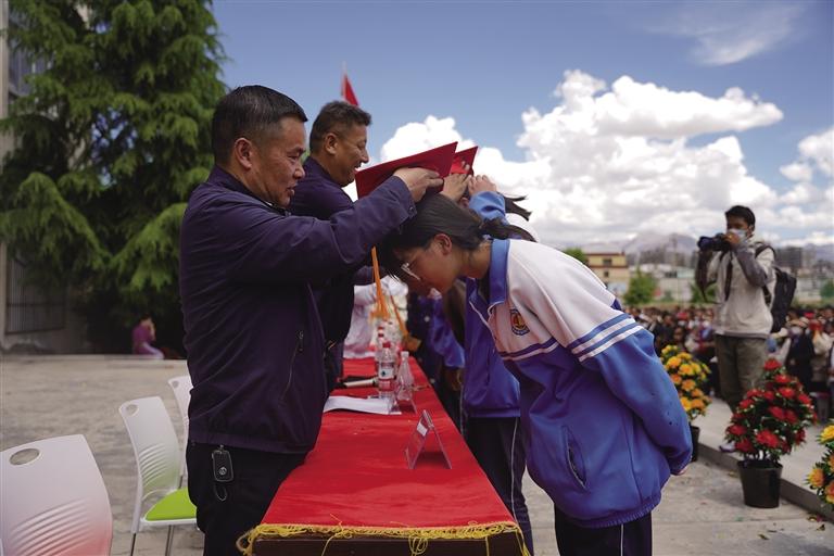 冠笄之禮,是中華民族重要的文化遺產,更是長大成人的象征。活動中,同學們戴上成人禮帽,以成人的姿態、豪邁的語調向著鮮艷的五星紅旗莊嚴宣誓,向祖國、向社會、向未來作出了莊重的承諾。拉薩市第四高級中學副校長陸彭飛對這群充滿蓬勃朝氣和無限希望的學子們表達了衷心的祝愿,他希望同學們懷揣感恩之心,敢于拼搏、勇于超越,用奮斗給自己最美的青春交上一份滿意的答卷。