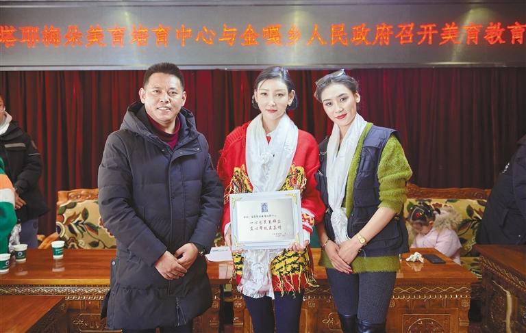 塔耶梅朵美育培養中心的學員展示藏族特色傳統服飾。