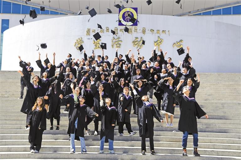 圖為西藏大學文學院本科畢業生在學校拍攝畢業照。記者 王敏 攝