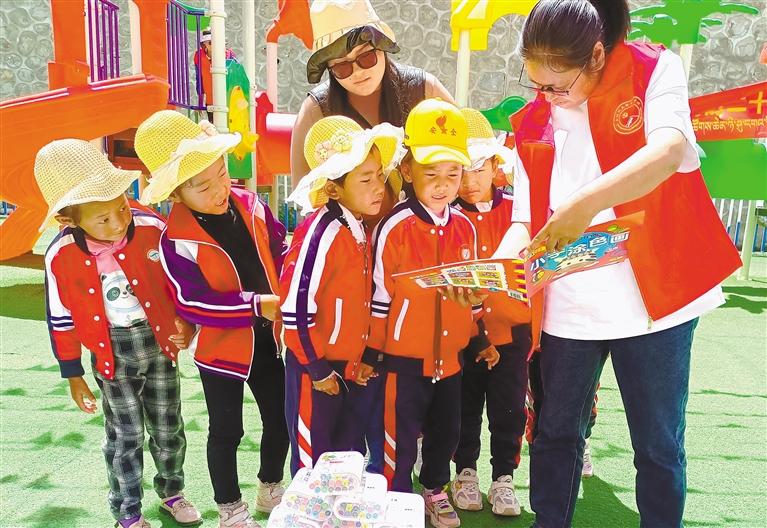 圖為桑日縣“童心向黨、助夢成長 喜迎黨的二十大”志愿服務活動現場。記者 段敏 攝
