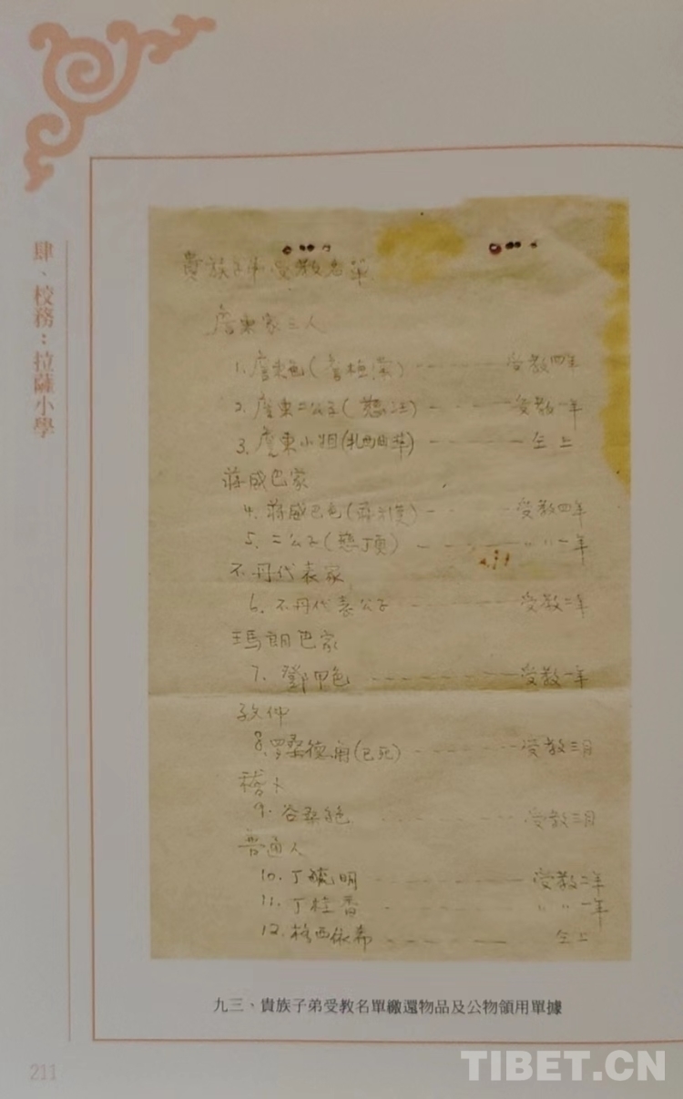 這期間,因為學校成績斐然,影響大增,不少貴族子弟也慕名前來就讀。拉薩小學專設一個特別班,招收貴族、富商的孩子,他們的教學是漢藏文一起上。在這個班里先后就讀的貴族子弟不少。如詹東家族的三兄妹,即詹東色、詹東·慈汪、詹東·扎西曲準。詹東色有個漢語名字,叫詹逢春(又稱詹植棠。他是個對中華文化非常喜愛的貴族子弟,會一口流利的四川話,還跟阿旺堪布的一位漢族徒弟學會了唱京戲。他曾在蒙藏委員會委員長吳忠信進藏主持達賴喇嘛坐床典禮時,全力給予了幫助。此外,在拉薩小學上學的還有瑪朗巴”家族、“稽卜”家族的子弟。十四世達賴的二哥嘉樂頓珠也曾在這里學習過。其他還有邊覺、唐麥、夏扎、雪貴巴等的子女。