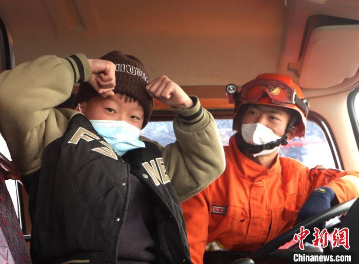 森林消防隊員組織小朋友體驗消防車?!×种ナ猩窒拦﹫D