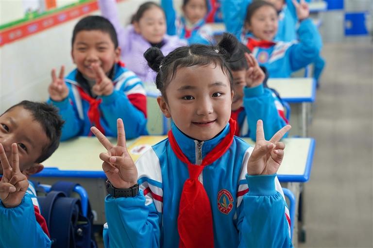 除了激動的家長,學生們的心情也很激動。在校門口,扎西旺扎和索朗培塔大老遠就認出了對方,倆人快速跑向對方,雖然戴著口罩,眼里卻充滿笑意?!案袅四敲淳媒K于見面了,太激動了,很想念我的好朋友?!痹魍χf。你假期看了什么動畫片、又新學了什么東西、去哪里玩了、作業完成得如何……太久沒見了,小伙伴們再次見面,分外親熱,大家一起嬉笑打鬧著進入校園。