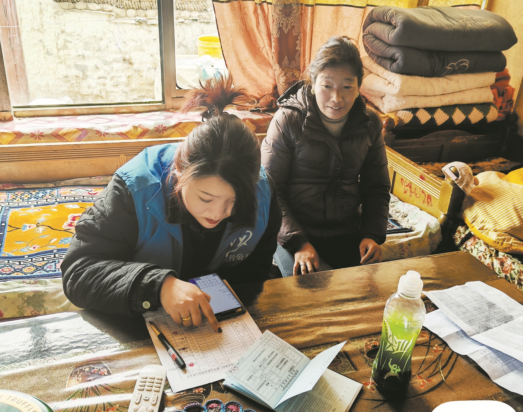 圖為工作人員在村民家中開展信息錄入工作。拉薩融媒記者 旦 達攝