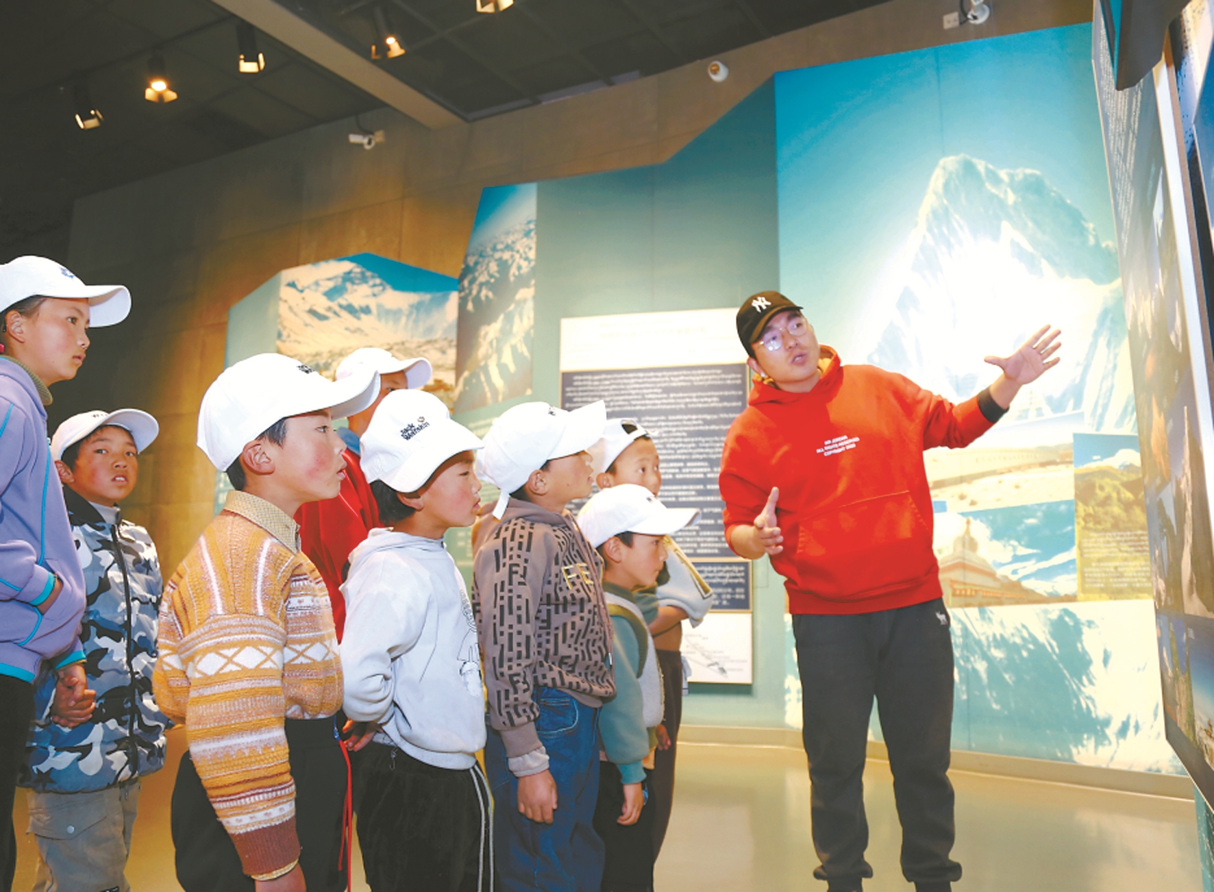 圖為博物館工作人員給小朋友們科普知識。西藏日報記者 格桑倫珠攝