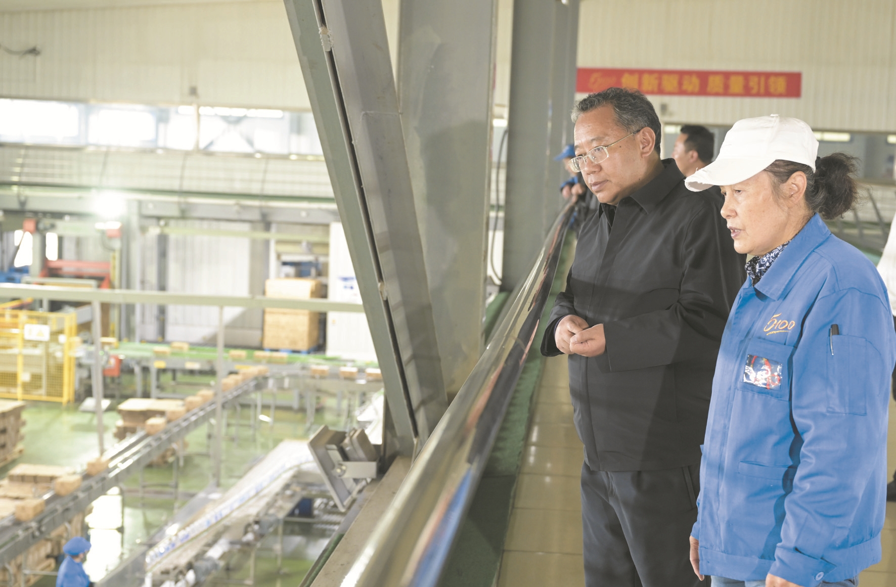5月8日至9日,自治區黨委常委、市委書記普布頓珠赴聯系縣當雄縣開展主題教育調研。這是普布頓珠在西藏冰川礦泉水有限公司詳細了解企業概況、生產經營、發展規劃等情況。拉薩融媒記者 貢覺群培攝