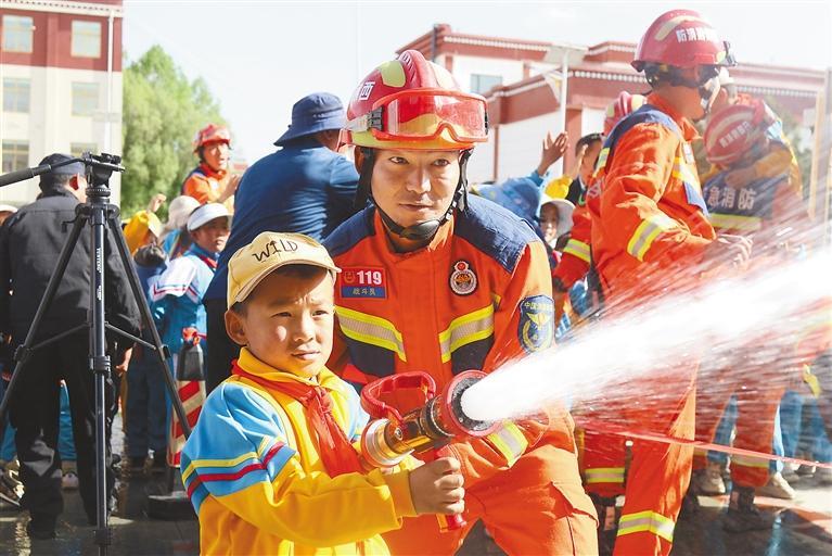 為進一步提升西藏自治區全區廣大師生的消防安全意識和自防自救能力,連日來,西藏各級消防救援隊伍深入轄區學校開展消防宣傳培訓活動。活動內容豐富,包括消防安全有獎知識問答、搜救犬表演、火災逃生模擬演練、滅火救援器材使用體驗、新型滅火設備展示等項目,吸引了不少師生參與。