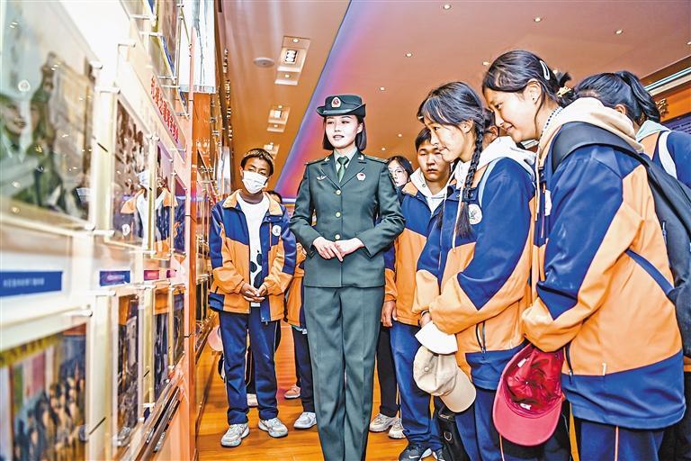 走進綠色軍營,感悟軍旅生活。活動中,近200名師生共赴軍營,師生在解說員的引導下,先后參觀了軍史館、軍史長廊、官兵宿舍等,對常規武器裝備、單個軍人隊列動作等親身體驗,真實地感受了軍人訓練生活。“國無防不立,民無兵不安。”來自日喀則市第三高級中學的學生旦增扎西說,“國防教育活動讓我對駐地部隊有了更深的了解,對金珠瑪米有了更深的認識。”