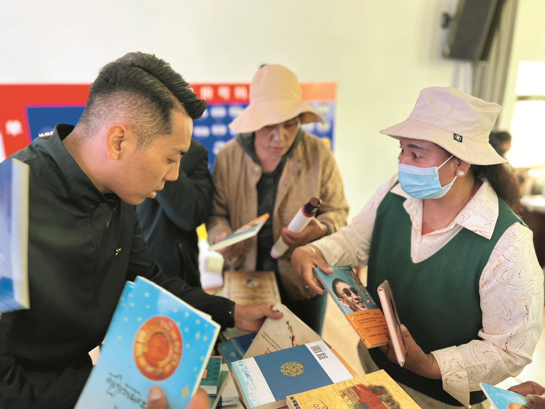 圖為圖書館工作人員在為居民免費發放書籍。拉薩融媒記者 大索朗曲珍攝