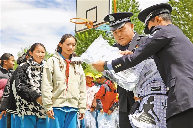 近日,山南市加查縣公安局加查鎮派出所開展以“從東南到山南,千里攜手,求學不難”為主題的愛心捐贈活動,為加查鎮小學生轉贈了福建省莆田市涵江區禁毒辦捐來的359個新書包。