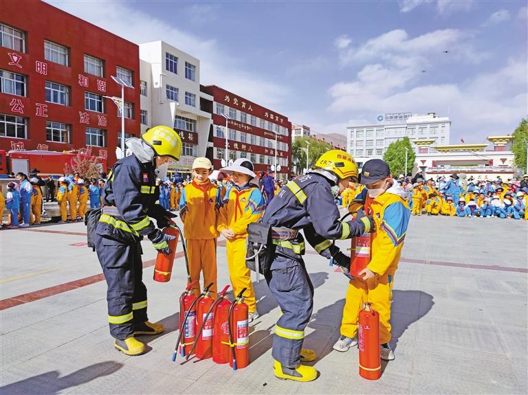 近日,日喀則市減災(zāi)委員會(huì)在日喀則市小學(xué)開展了“防災(zāi)減災(zāi)進(jìn)校園”主題活動(dòng)。活動(dòng)中,消防指戰(zhàn)員向師生詳細(xì)講解了消防裝備用途和用法,并組織師生開展消防應(yīng)急疏散演練。沉浸式、互動(dòng)式、體驗(yàn)式的防災(zāi)減災(zāi)宣傳,進(jìn)一步增強(qiáng)了師生消防安全意識(shí),提高了應(yīng)急避險(xiǎn)、自救互救能力。