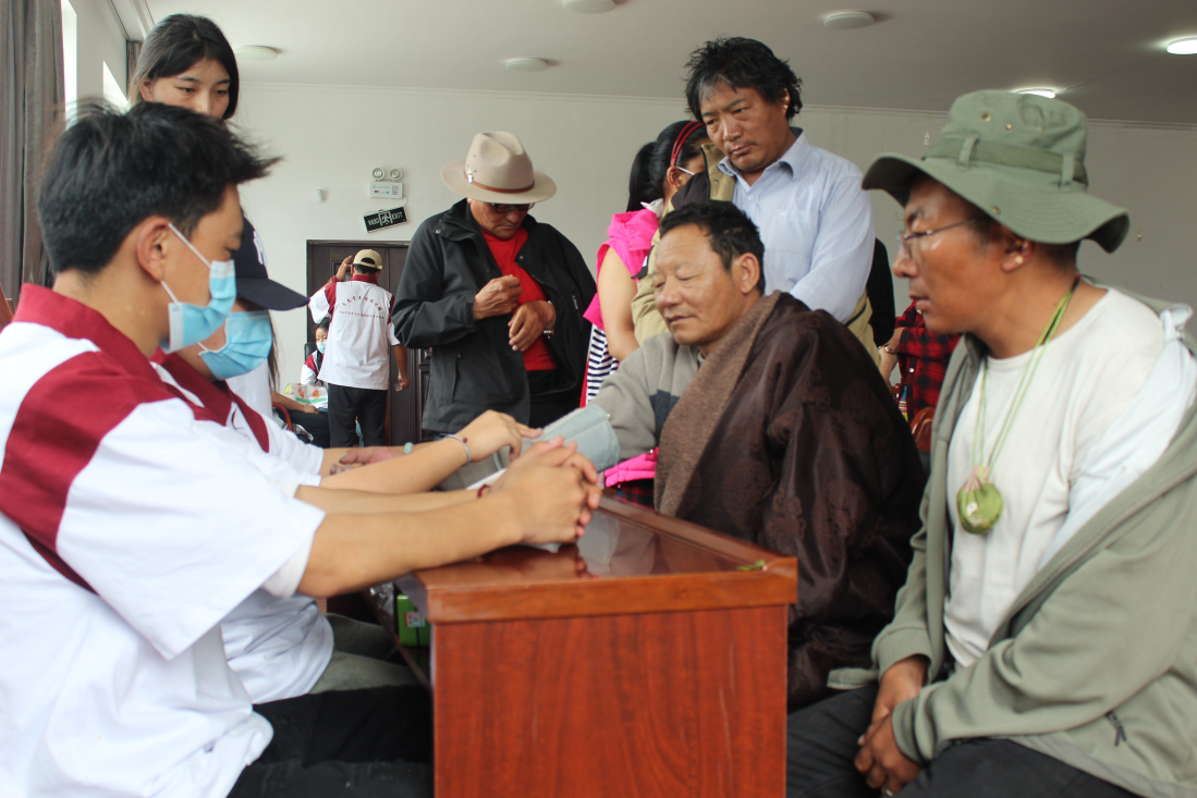 活動(dòng)期間,“民族團(tuán)結(jié)返鄉(xiāng)實(shí)踐團(tuán)”師生先后到森布日高海拔生態(tài)搬遷安置點(diǎn)和那曲駐拉薩辦事處等,與西藏防治艾滋病協(xié)會(huì)工作人員共同開(kāi)展“中醫(yī)藥健康進(jìn)西藏 民族團(tuán)結(jié)我先行”的愛(ài)心醫(yī)療志愿服務(wù),為當(dāng)?shù)乩习傩蘸屠细刹块_(kāi)展針對(duì)性的中醫(yī)藥知識(shí)宣講,還為大家測(cè)血壓、血糖,共同體驗(yàn)中醫(yī)藥花茶及香囊的制作過(guò)程,免費(fèi)發(fā)放藥物等。