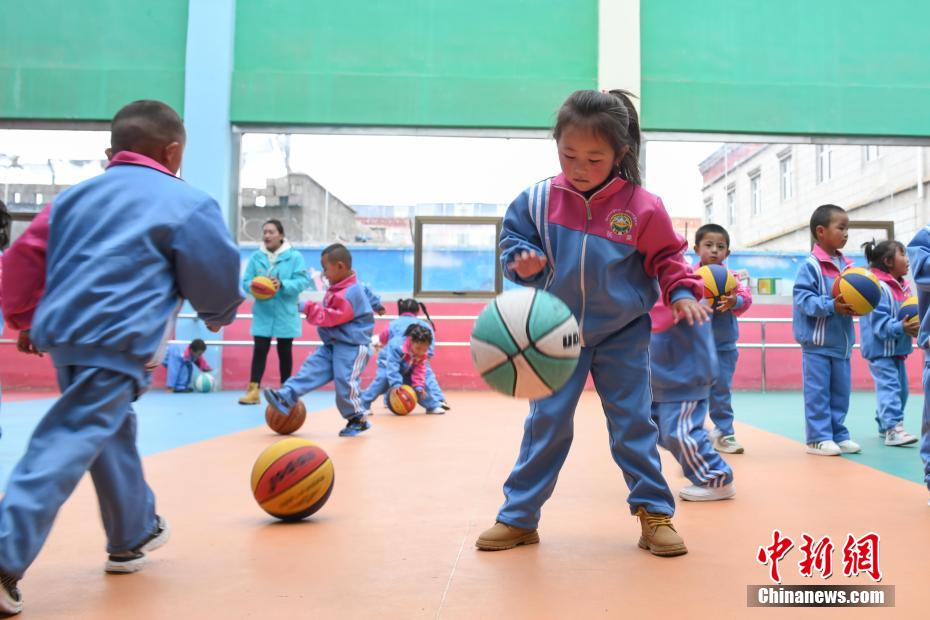 幼兒園將藏北牧區特色教育與現代教育在此融合。走進園區,供衛生消毒使用的傳統藏香香氣縈繞四周,藏地特色濃郁。兩塊活動場地色彩明艷,配備大型活動器械及輪滑設備,旨在激發幼兒活動熱情;教室內則色調質樸,引導孩子靜心思考。圖為那曲市第三幼兒園的學生正在游戲。