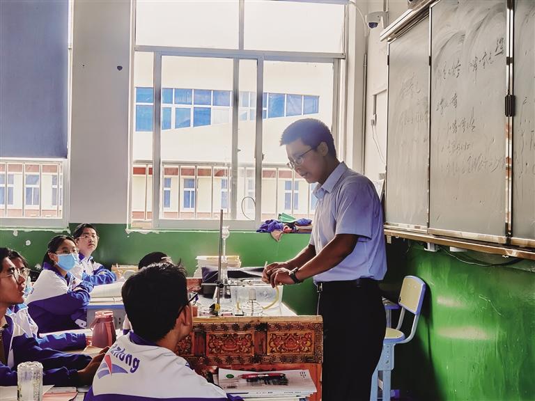“李老師非常平易近人、和藹可親,他會帶著我們做化學(xué)實(shí)驗(yàn),在實(shí)驗(yàn)中可以了解到很有趣的知識,讓我們更加快樂地學(xué)習(xí)。”拉薩市第八中學(xué)九年級二班的同學(xué)們表示,李老師關(guān)心每個(gè)人的學(xué)習(xí)狀況,如果有人在考試中表現(xiàn)不佳,李老師會親自講解,并在試卷上標(biāo)注出需要改正的錯(cuò)誤。下課后,李老師也會認(rèn)真傾聽學(xué)生們的想法和感受,與孩子們互動交流。