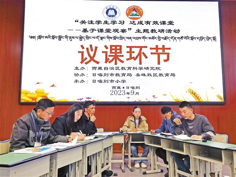 示范課后,日喀則市小學備課組成員積極議課。 記者 扎西頓珠 攝