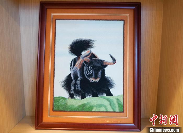 圖為中心內展示的青海省民族團結進步形象標識刺繡作品。馬銘言 攝