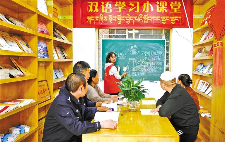 黨的十八大以來,西藏自治區黨委、政府系統謀劃推進國家通用語言文字推廣普及工作,加快提高普及程度,全面提高普及質量,滿足各族群眾日益增長的國家通用語言文字教育和服務需求,豐富人民精神文化生活,推動民族團結進步事業高質量發展。