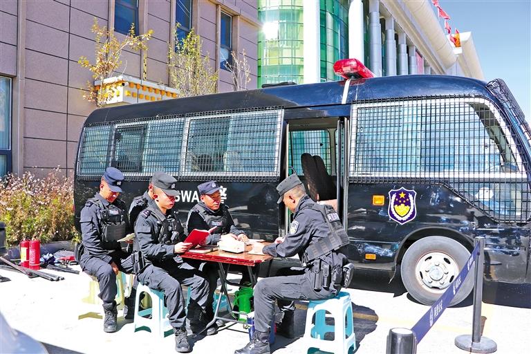 執勤民警利用工作間隙開展主題教育學習研討。記者 達珍 攝