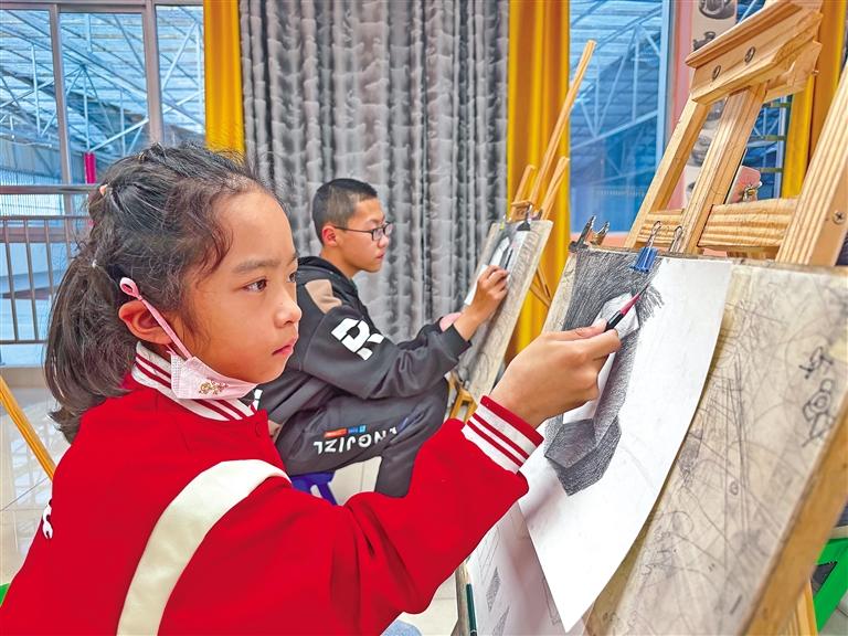 圖為少年宮學員練習素描。