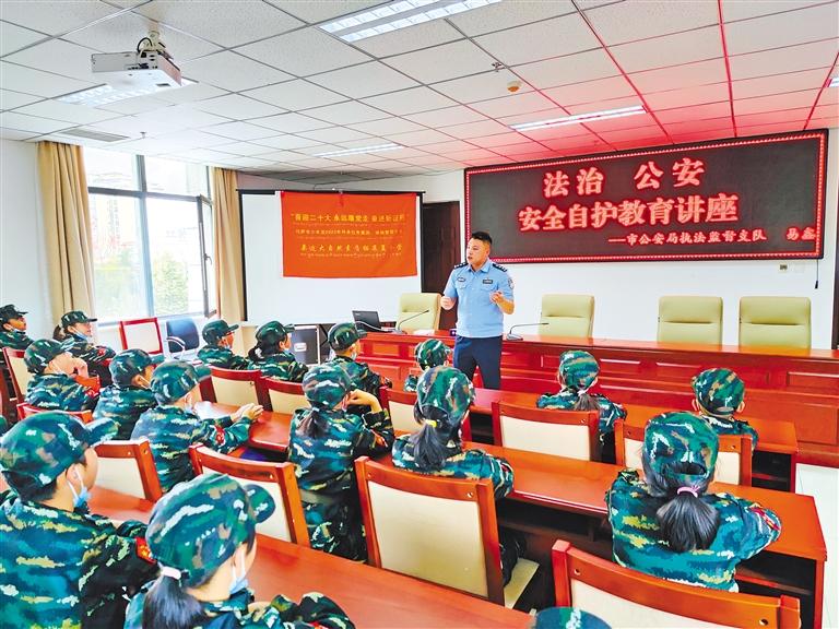 圖為拉薩市公安局執法監督支隊民警為少年宮學員開展安全自護教育講座。