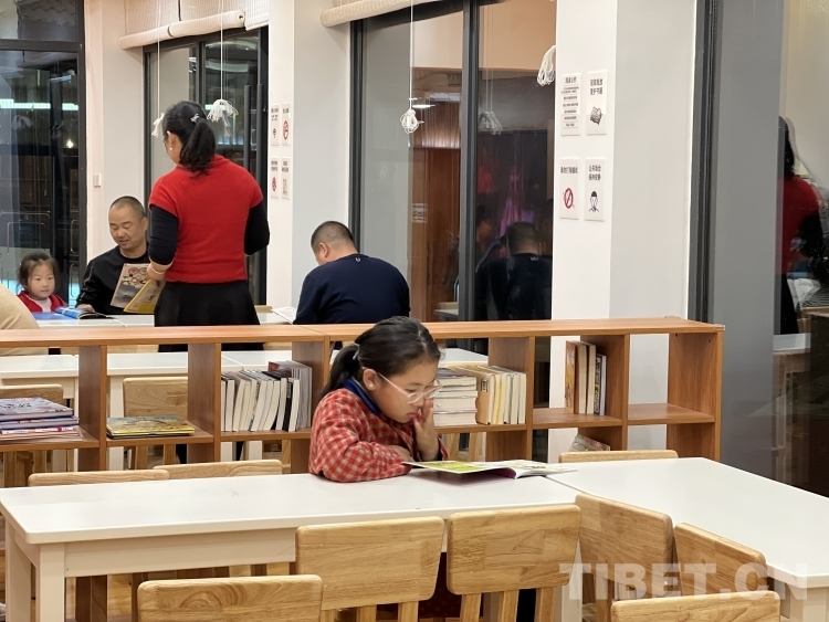 走進蓮花書屋,一樓的書架和閱讀區幾乎坐滿了專心閱讀的大人小孩。“我喜歡來公園散步,這里環境很美。前天過來散步時,看到我期待已久的書屋終于可以進去看書了。家里的書都被我看完了,所以我這兩天一寫完作業就要來這里看新的書。”五年級的德央措姆在少兒閱讀區翻看書籍,她為能夠擁有這樣的讀書環境而感到很高興。
