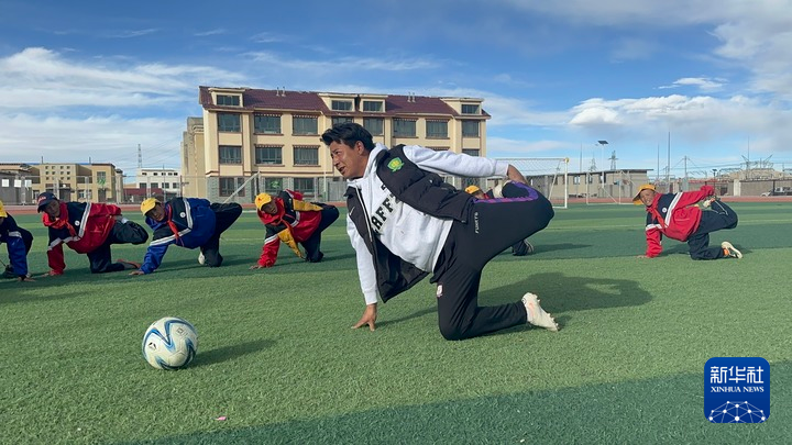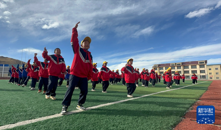 10月13日,在西藏那曲市班戈縣中石化小學,學生在操場上做運動。新華社發(王敬 攝)
