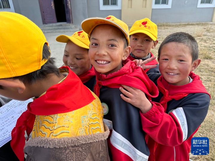 10月13日拍攝的西藏那曲市班戈縣中石化小學學生。新華社發(王衛 攝)