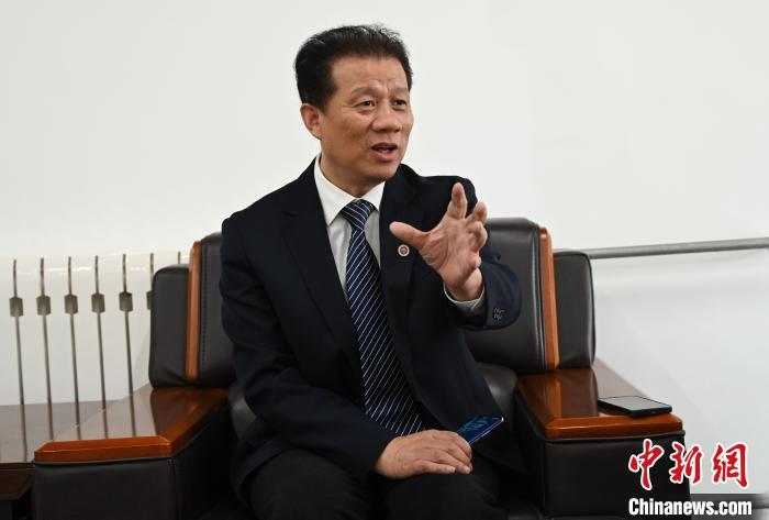 圖為西藏民族大學黨委書記、副校長劉凱接受采訪。趙朗 攝
