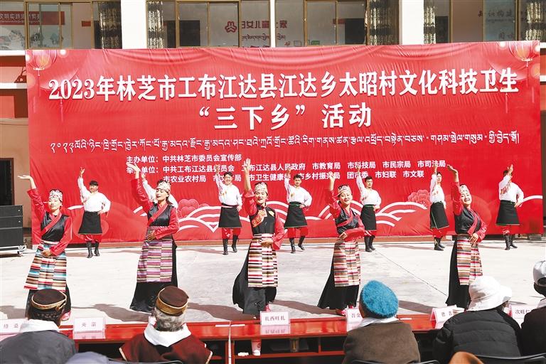 近日,由林芝市委宣傳部牽頭在工布江達縣江達鄉太昭村聯合舉辦林芝市文化科技衛生“三下鄉”活動。林芝市、工布江達縣兩級文藝工作者為現場群眾送上的《續寫盛世》《栢榭》等精彩節目和哈呼曲藝社帶來的語言類節目《學習國家通用語言文字》,深受群眾喜愛,節目中還穿插黨的二十大精神等相關知識問答環節,在場群眾積極參與,踴躍回答,現場氣氛十分活躍。