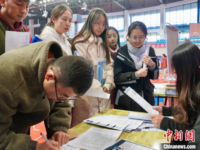 圖為招聘會現場,畢業生正在填寫信息。 劉洋 攝