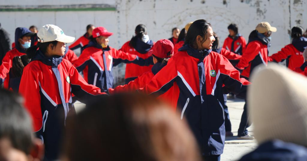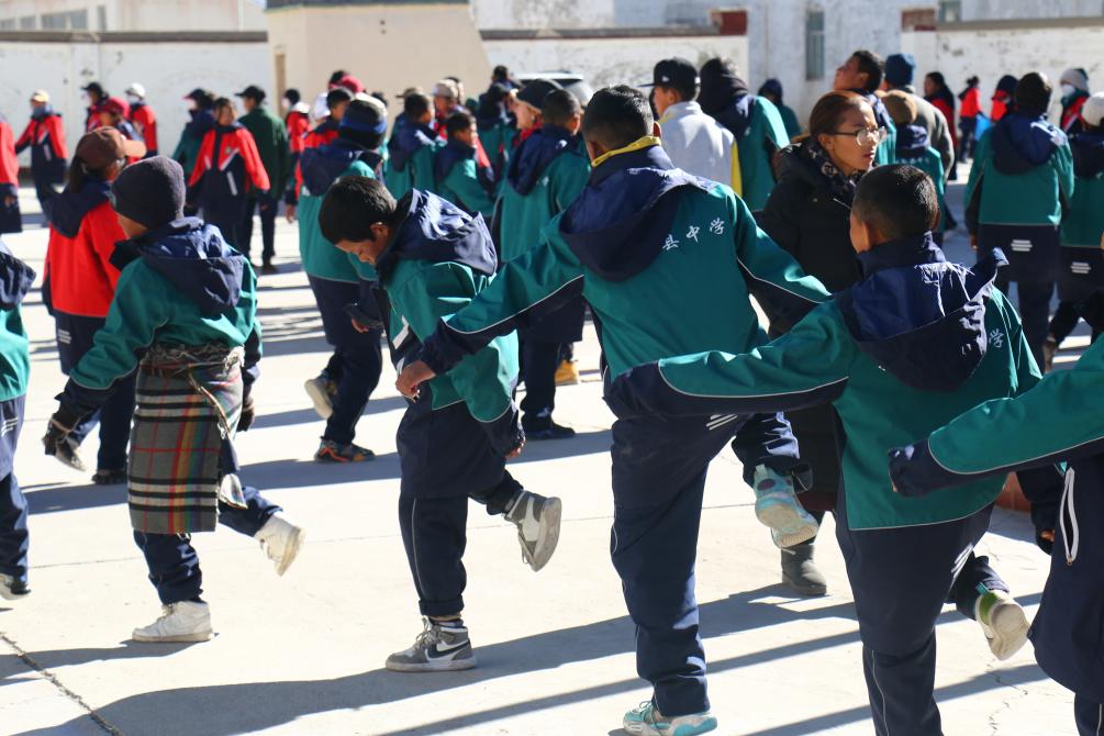 西藏阿里措勤縣中學的學生們正在跳“磁石彈舞”(11月13日攝)新華社記者 聶毅 攝