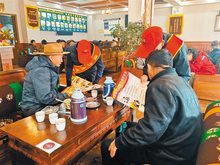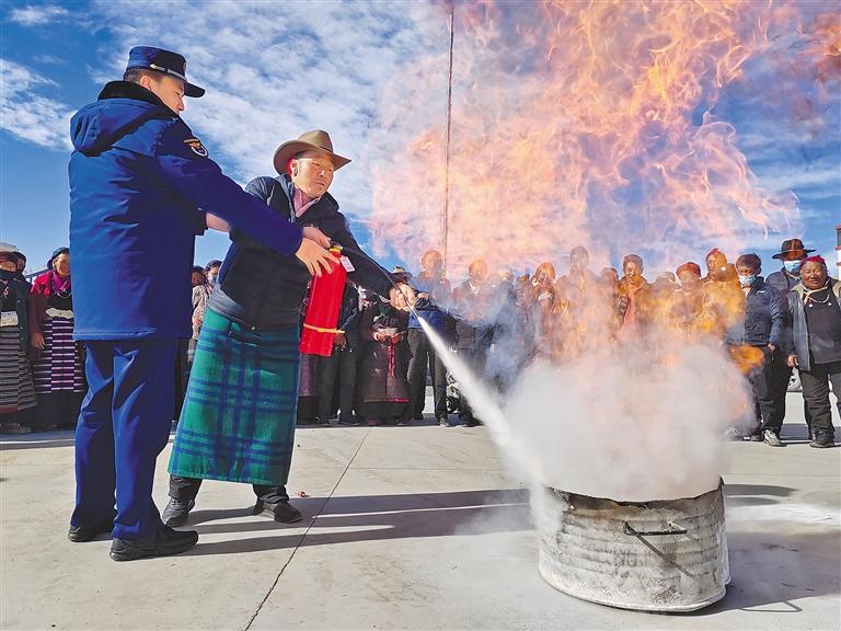 活動中,隊伍各級積極制作藏漢雙語宣傳彩頁、海報、宣傳冊、宣傳袋等“消防禮包”80余萬份,聯動消防志愿者通過“走街串巷”的形式深入轄區“九小場所”、沿街門店、居民樓院等廣泛發放,并采取“面對面”宣傳講解、“一對一”互動交流等方式,向廣大群眾傳授防火基本常識,教授如何正確使用滅火器、如何撲救初起火災、如何逃生自救等。在開展宣傳的同時,“火焰藍”和“志愿紅”還進村入戶,幫助群眾查找火災隱患,講解隱患存在的嚴重危害性,切實提高群眾的消防安全意識和自防自救能力。