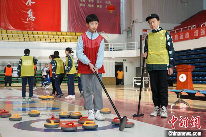 青海冰雪運(yùn)動(dòng)會(huì)賽場:冰壺少年顯身手